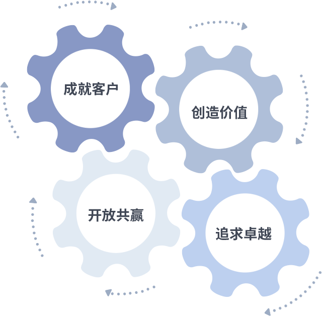 成就客户是一切决策的出发点,创造价值是衡量所有工作的标准,追求卓越是z6com·尊龙(中国)时凯做事做人的态度,开放共赢是z6com·尊龙(中国)时凯的格局也是最终的结果。价值观的齿轮环环相扣,推动着组织里的每个人不断向前。